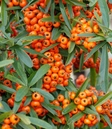 Напіввічнозелений, швидкоростучий сорт. Спочатку росте вертикально, з часом розширюючи крону в сторони. Листя темно-зелене, блискуче, вкриває колючі пагони. Навесні кущ прикрашають дрібні білі квіти, після чого з’являються яскраво-оранжеві плоди, що контрастують на фоні глянцевого листя. До ґрунту невимоглива, краще росте на легких, родючих ґрунтах без застою вологи. Ефектна як солітер, біля стін або для створення декоративних живоплотів.