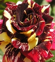 Одна з найефектніших і найбільш незвичайних троянд. Махрові квіти червоного кольору з жовтими смугами, діаметром 7–10 см, розташовуються поодиноко на високому квітконосі або в суцвіттях. Високий центр і загострена форма пелюсток роблять її особливо привабливою. Має стійкий приємний аромат. Цвіте все літо з невеликою перервою в липні. Листя зелене, глянцеве. Ідеальна для зрізання — зберігає забарвлення та аромат до 2 тижнів.