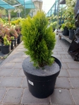 Декоративна форма туї з ніжною золотисто-зеленою хвоєю, яка зберігає колір навіть узимку. Крона густо-куляста, з часом стає ширшою, з рівними вертикальними пагонами.