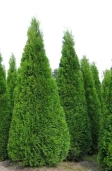 ‘Smaragd’ — найпопулярніший сорт туї для живоплотів та декоративних композицій. Має густу, рівномірну, конусоподібну крону й насичено-зелену хвою, яка зберігає колір навіть узимку. Відзначається швидким ростом, стійкістю до морозів і невибагливістю.